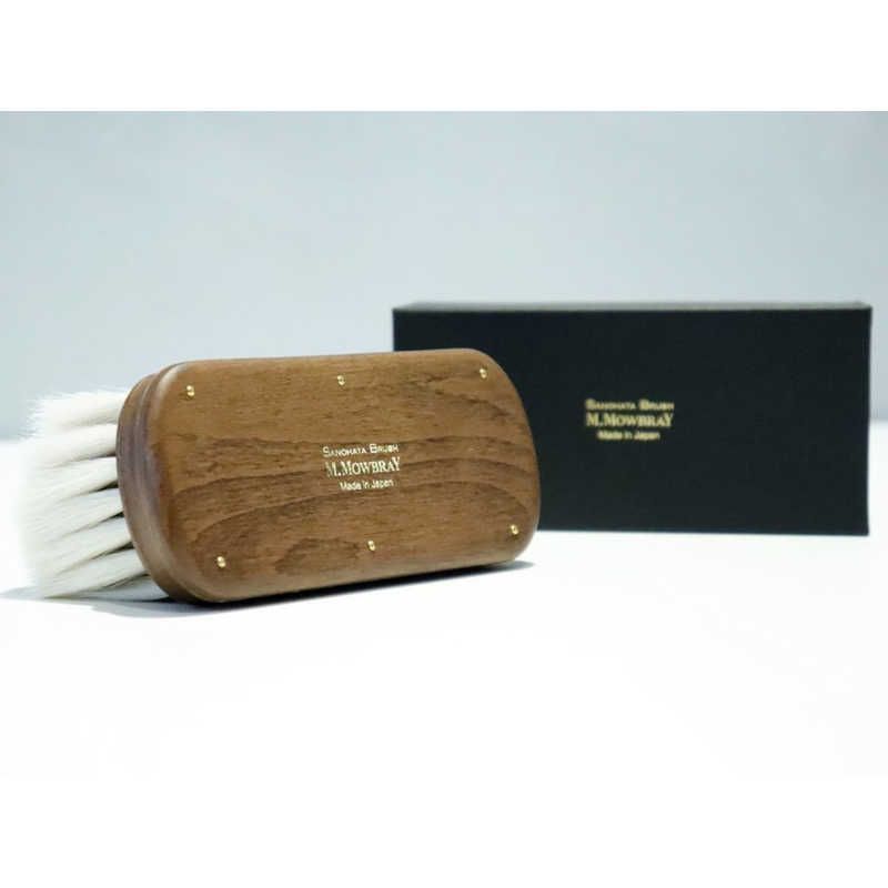 上質な山羊毛を高い密度で使用しています。広く毛が植えてあるためドレスシューズだけでなく、ブーツにも使いやすいことも特徴のひとつです。手植えブラシは製法上、毛先の最も優れた部分を選び抜いて、靴に触れる先端部分にあてることができます。毛が細く繊細な山羊の毛は抜けやすいですが、熟練職人の手作業により、毛が抜けにくく仕上がっています。