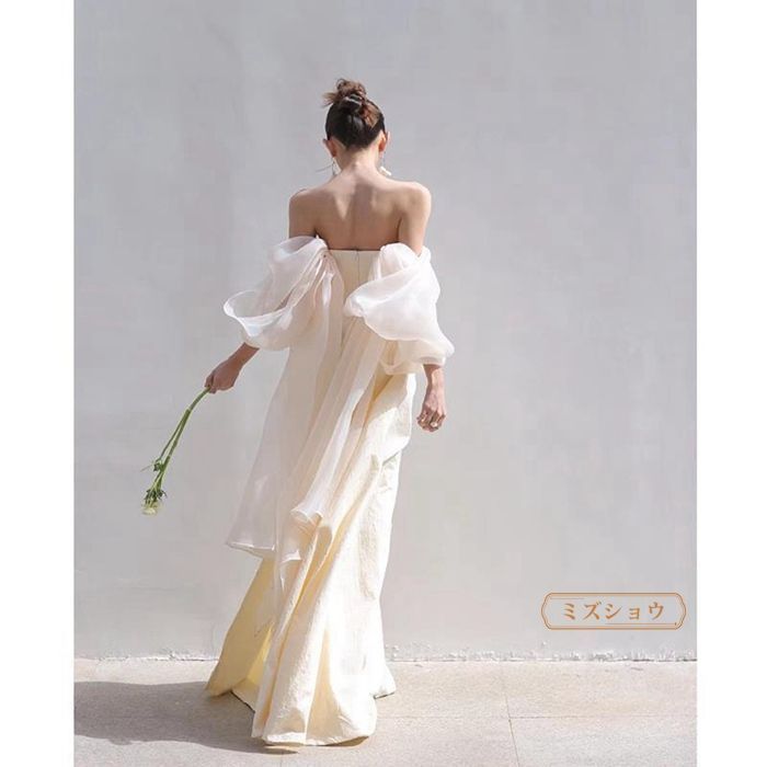 前撮りドレスウェディングドレスマーメイド前撮りオフショルダーオフショル袖ありドレス花嫁二次会ドレス花嫁ウエディングドレス